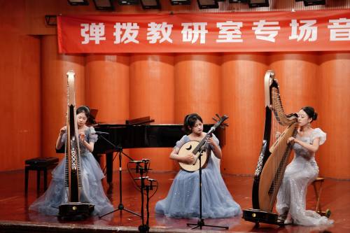 本次音乐会由弹拨教研室倾力打造,师生同心,倾情呈现。在两晚的演出中,21首精心编排的乐曲次第登场,或为清雅隽永的独奏,或为气势恢宏的协奏,或为默契交织的重奏。指下生韵,琴筝和鸣;轮指如雨,阮琵相应。演出既有对传统经典的深情致敬,也不乏对当代表达的大胆探索,充分展现了弹拨乐器丰富的音色层次与独特的艺术魅力。现场气氛热烈,动人的旋律在音乐厅内久久回荡。