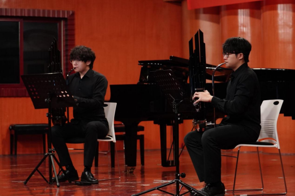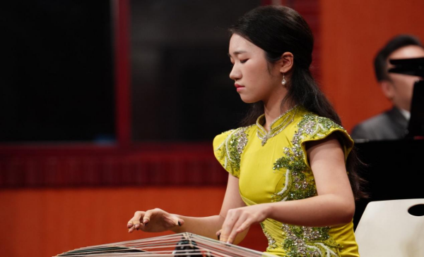 演奏者们均为民乐系拔尖人才及优才计划入选者,他们在舞台上技艺娴熟、情感饱满,将每首作品的内涵诠释得淋漓尽致。古筝演奏者陈付沛雯演绎的《晨兴》,以“散-慢-中-快-急”的节奏变化重构京韵大鼓元素,勾勒出老北京胡同的晨景画卷;董奕君凭借《云裳诉》,用秦筝古朴音色诉说唐玄宗与杨贵妃的爱情悲剧,陕西“碗碗腔”音调引人入胜;竹笛演奏者任音齐带来的金钟奖获奖作品《热情与冷漠的邂逅》,通过音乐语言展现对立情绪的碰撞与交融,尽显当代竹笛的艺术张力;汤郑玲的《姑苏城》以“沧浪亭”“山塘街”“东方之门”为线索,从历史、江南、现代三个维度勾勒苏州风韵;王奕凯与王薄仲携手演绎的笙曲《信叶情》《融容·鸣响》,前者以基诺族“树叶信”为素材,再现民族婚恋场景,后者则以传统笙音融合现代和声,彰显跨界创作活力;王一演奏的《阳光·大地》,用恢宏旋律讴歌盛世华景,礼赞时代精神;扬琴演奏者夏馨带来的《凤点头》,借鉴京剧打击乐素材与西方现代作曲手法,以鲜明的敲击效果展现中国风格。