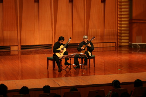 2006年10月31日,我系古典吉他专业老师徐宝和法国波尔多国立音乐学院院长让-吕克·波尔特利先生,在我院大音乐厅举行了一场古典吉他二重奏的音乐会。当晚大音乐厅座无虚席,院系领导、院内外师生、中法音乐爱好者纷纷到场。徐宝老师和让-吕克·波尔特利先生为听众演奏了费尔南多·索尔的《幻想曲 作品54号》、恩里克·格拉纳多斯的《诗意华尔兹》、贝拉·巴托克的《六首罗马尼亚民间舞曲》等曲目。音乐会还特邀我院古典吉他客座教授谢乾隆及八名古典吉他专业的优秀学生为大家演奏了奥利维·本萨的《三个动感瞬间》等曲目。整个音乐会赢得了听众们经久不息的掌声,大家纷纷表示从音乐会中感受到了专家精湛的演奏技术,陶冶了艺术情操