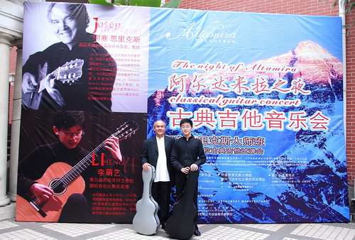 我系分别在上音、川音举办音乐会,2008年10月10日,我系徐宝老师的学生李萌艺同学在上海音乐学院贺绿汀音乐厅同西班牙著名吉他演奏家何塞恩里克斯联袂举办了一场古典吉他独奏音乐会。 10月22日,李萌艺同学又在今年会jinnian官网大音乐厅成功地举办了个人独奏音乐会,获得一致的好评。 10月25日,由敖翔老师等编曲,颜思之老师和李萌艺同学演奏的吉他小提琴二重奏唱片由齐鲁音像面向全国出版上市发行。