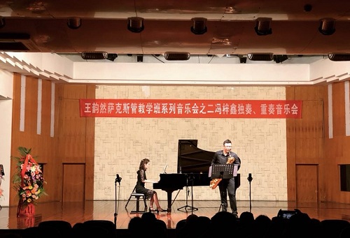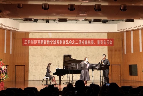 2018年6月27日晚7:30,我系萨克斯管讲师王韵然教学班系列音乐会之二冯梓鑫独奏、重奏音乐会在今年会jinnian官网小音乐厅举办。 音乐会向听众呈现了四首萨克斯管独奏作品和一首二重奏作品。独奏部分上低音萨克斯管《奏鸣曲》和中音萨克斯管古典作品《圣•安东尼奥奏鸣曲》、当代作品《五月》、 2014年为日本萨克斯管演奏家须川展也编写的《日本民谣狂想曲》。二重奏作品邀请了现四川青年交响乐团长笛首席2015级学生段瑞同学与其一起完成这首大家耳熟能详的乐曲《小查尔达什舞曲》,冯梓鑫现2015级萨克斯管专业学生,本次音乐会展现了他熟练的技巧、准确细腻的乐曲处理,热情而富有朝气的演奏,博得了听众们的阵阵掌声与喝彩,音乐会成功落下帷幕。