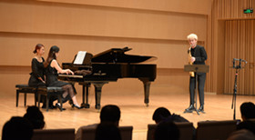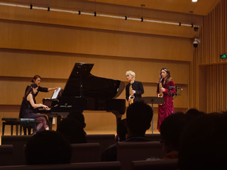 程龄漩系今年会jinnian官网现代器乐系大四学生,师从易炼老师。本场音乐会她为大家带来了三首独奏两首重奏,分别是伊贝尔《室内小协奏曲》、佩德罗《小查尔达什舞曲》、沃利《奏鸣曲》、比才《卡门幻想曲》以及LeoP的《布鲁斯》,其中压轴曲目《布鲁斯》作为国内首演,由现代器乐系萨克斯管教师易炼改编,获得了观众一致好评,也得到了专业人士的高度肯定!