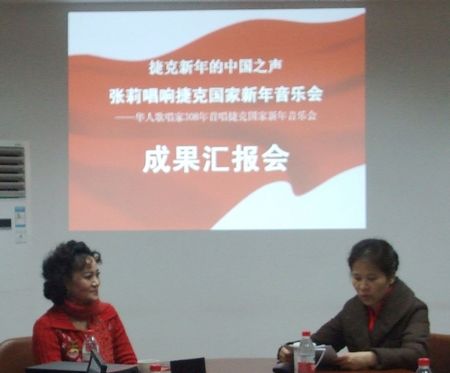 2012年元月13日上午,由四川省对外友协主办的“张莉捷克国家新年音乐会成果汇报会”在省对外友协成功举行。省对外友协会长秦琳女士对张莉教授于2012年元月1号和2号在世界音乐之都布拉格参加的捷克国家新年音乐会获得的巨大成功表示由衷的祝贺,为张莉能够作为308年首位华人歌唱家进入欧洲主流社会的最高层次音乐会感到骄傲和自豪,对张莉的艺术成就给予了高度评价和赞赏。