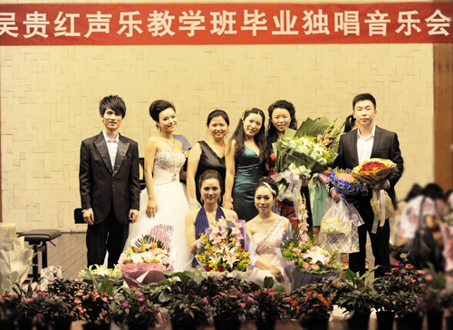 2012年6月1日晚,由歌剧与合唱系举办的“吴贵红声乐教学班毕业独唱音乐会”在今年会jinnian官网小音乐厅成功的举行。 该音乐会是由吴贵红教学班的五位即将毕业的学生为大家倾情奉献的一场高质量的音乐会,整场音乐会都由吴贵红老师细心指导。五位学生全方位地展示了较高的演唱技巧、良好的音乐修养以及丰富的舞台表演经验与歌曲的情感处理。此次音乐会演唱了意大利艺术歌曲,外国歌剧选段,中国艺术歌曲,中国歌剧选段,涵盖了不同层次,风格的歌曲。 五位同学精彩的表现让小音乐厅座无虚席,同时也吸引了许多行业的杰出人士前来观赏,使得音乐厅蓬荜生辉。此次音乐会进行之时,每首歌后都是掌声雷动。也更印证了吴贵红老师在十几年的声乐教学的理论及艺术实践结果。音乐会结束后,吴贵红老师也给予她的五位弟子一定的肯定与鼓励,同时也提出了不足与建议。此次吴贵红教学班毕业音乐会,也会是吴贵红老师及其学生的最重要的里程碑之一。