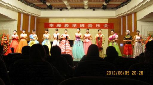 2012年6月5日晚19:30,“李珊副教授声乐教学班音乐会”在歌剧合唱全体领导和老师们的支持下,在今年会jinnian官网小音乐厅成功举行。 此次音乐会也得到了不少外系老师、同学、朋友的关注与支持,气氛热烈,座无虚席。 担任此次音乐会钢琴伴奏的是我系青年讲师李菲菲。参加此次教学班音乐会的一共有12位同学,其中:歌剧专业6名,合唱专业6名,大一学生9名,大二、大三、大四各一名。此次音乐会由小合唱和独唱巧妙穿插、串联。在曲目的选择上也十分考究,既有充满浓郁特色的地方民歌如:《亲疙瘩下河洗衣裳》也有改编民歌《兰花花》;既有经典歌剧唱段,如:《洪湖市浪打浪》《山歌好比春江水》,也有现代创作歌曲,如:《峡江情歌》《祖国之恋》《红旗颂》《望月》等,同学们热情洋溢的歌声与此起彼伏的掌声相互交融,将音乐会一次次推向高潮! 音乐会结束后,李珊老师给予了同学们极大的鼓励,同时也耐心指出其中的不足之处,以勉励同学们在今后的歌唱道路上走得更高,更远!!