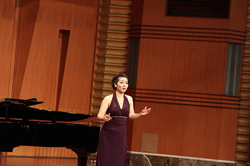 她用自然优美、轻松惬意,并富有魅力的歌声很好地演绎了具有爵士风格的英语歌曲《夜莺在巴克利广场歌唱》。她的乐感极佳,所演唱的中外经典艺术歌曲《月光》、《幸福》、《巴黎圣母院的敲钟人》、《打起手鼓唱起歌》等中外艺术歌曲将观众带入如诗如画的音乐艺术殿堂。一首首经典,一句句真切,一声声诉说,一字字深情。尤其是下半场演唱的瓦格纳的《第一女神叙事诗》(选自歌剧《众神的黄昏》),她那强有力的、具有清楚表达力的嗓音完全充满了整个音乐厅。贾玲老师对此首作品的演绎和诠释,如英国乐评人士所评——“犹如在斯卡拉歌剧院聆听演唱”,将音乐会的气氛推向了高潮。