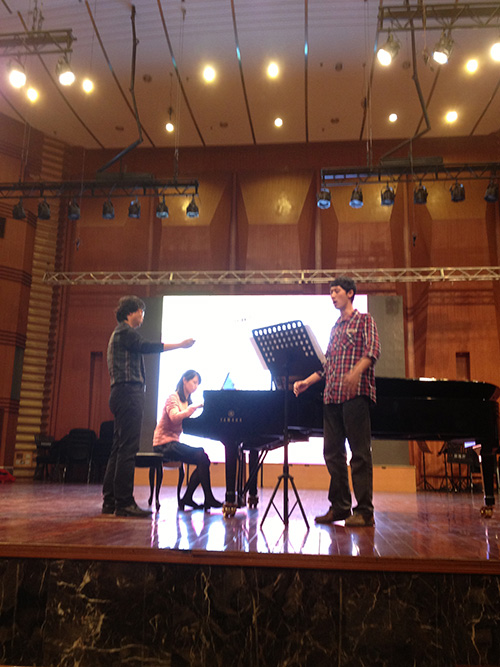 5月15日下午,小课与舞台组的决赛在大音乐厅举行。全院教师现场观看了比赛,大音乐厅座无虚席。郭江滨老师第五个出场,他带病上场,精神饱满,教学严谨生动,风趣而幽默,范唱标准而优美,在课程设计、教学手段、语言表达、课程组织、范唱以及教学形象都展示了很好的教学水平。