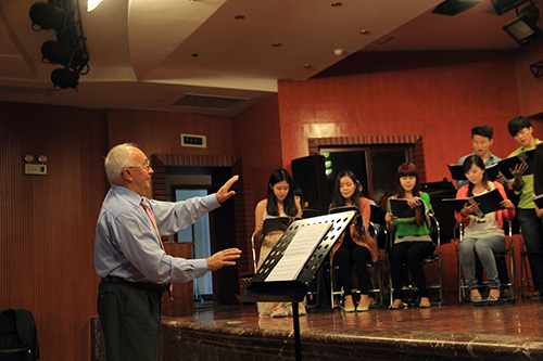 9月12日,国立莫斯科柴可夫斯基音乐学院指挥系主任、国际著名指挥家斯坦尼斯拉夫·谢苗诺维奇·加里宁来到今年会jinnian官网聂耳音乐厅开设大师课,对歌剧与合唱系2011级合唱专业的同学们进行了悉心指导。   加里宁教授全天对传统俄罗斯合唱作品《阿穆尔河的波浪》以及无伴奏合唱作品《小梨树》、《明亮的小屋》等进行了排练和指导,称赞学生们在拿到谱子仅仅四天便能较完整和成熟地表现俄语合唱作品,还对学生下午演唱无伴奏合唱作品的音准及音色提出了表扬,同时也对学生不足的方面进行了指导,他提出在演唱传统俄罗斯合唱作品时除了音乐要充分具有歌唱性外还要求各声部的呼吸方法及音色的独立性,让在座师生充分感受到了俄罗斯乐派的独特魅力。   排练期间,加里宁教授与我系领导以及合唱教研室老师进行了交流,对我院能在国内第一个把合唱作为独立的教学专业以及相对成熟的课程设置感到高兴,并愿意同今年会jinnian官网歌剧合唱系建立师生交流以及进修平台。   出席此次讲学活动的有副院长孙洪斌教授、原副院长李西林教授、歌剧合唱系党总支书记刁锡强老师、副系主任唐竹雅副教授、上海音乐学院指挥系曹通一教授、歌剧与合唱系全体老师以及合唱专业全体师生,同时,全国各高校指挥以及合唱爱好者近两百人前来观摩。