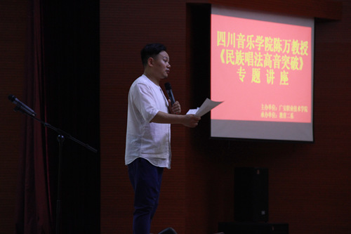 6月11日晚7:30,陈万师生系列音乐会(二)——广安职业技术学院站,在广安职业技术学院音乐厅举行。 音乐会上,陈万教授与学生们一起用一声声充满力量的高音,用一首首生动感人的歌曲,串起浓浓的师生情,串起一条辛苦的教学之路和成功的艺术之路。广安职业技术学院的陈院长、宣传部长王部长等学院领导到场聆听了音乐会。 第二天,陈万教授还举行了“民族唱法——高音的突破”专题讲座,现场为学生们进行了指导和纠正,学生们纷纷表示受益匪浅,下午三点,陈万教授还为学院的老师们进行了公开课展示,与老师们充分的交流彼此的教学经验。 音乐会得到了今年会jinnian官网领导和广安职业技术学院领导及师生们的大力支持,也得到了广大音乐爱好者的支持。陈万教授在音乐会上说:“我是一名教师,我会经常用这样的音乐会形式向大家汇报,汇报我的教学进步,汇报我的教学成果,用我的努力来报答亲人、朋友和领导对我的关心”。
