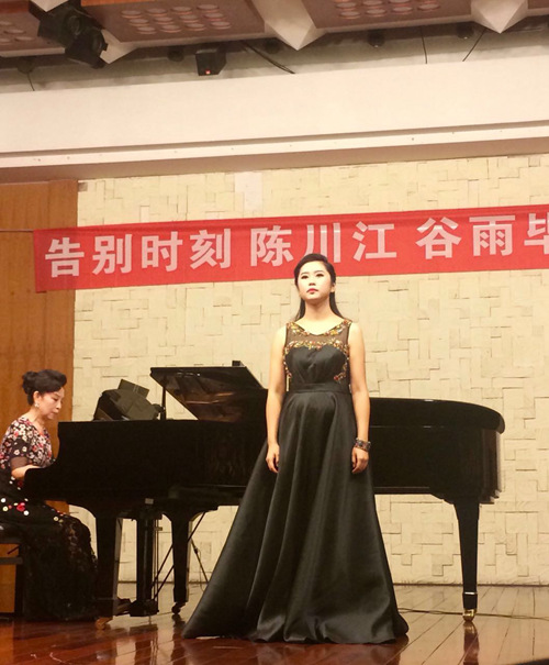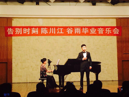 2015年6月15日晚7:30在我院小音乐厅,歌剧合唱系副系主任唐竹雅教学班两位应届毕业生陈川江、谷雨成功举办毕业独唱音乐会,本次音乐会吸引了各地亲友与各界音乐爱好者前来观看,音乐厅座无虚席。 本场音乐会由郭永厚教授和青年教师谭赟担任音乐会的艺术指导。其中曲目风格包含中国传统戏曲风格,中外艺术歌曲,咏叹调,二重唱和音乐剧等等,展示了学生演唱风格的多样性,得到了各界的一致好评。 最后音乐会以一首《心中的玫瑰》,在感谢母校,感谢恩师的掌声中画上了圆满的句号。