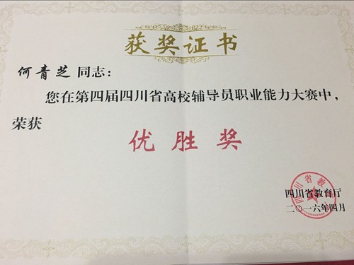 喜讯!我系辅导员何青芝老师在第四届四川省高校辅导员职业能力大赛中荣获佳绩