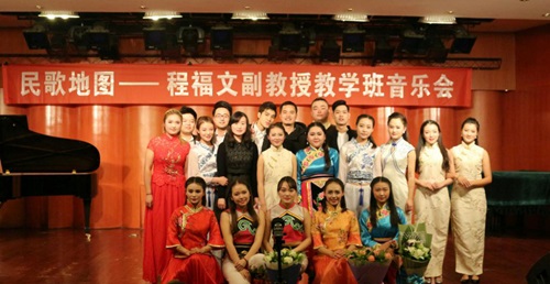 歌剧合唱系程福文副教授教学班音乐会在今年会聂耳音乐厅成功举办 2016年11月28日晚,歌剧合唱系程福文副教授教学班音乐会在今年会聂耳音乐厅成功举办。整场音乐会围绕着“民歌地图”这一主题展开。同学们演唱了各地方极具特色的民族歌曲,如:青海民歌 《下四川》 《四季歌》;山西民歌 《三次到你家》 《打酸枣》;江苏民歌 《太湖美》 《茉莉花》;云南民歌 《猜调》;内蒙古民歌 《鸿雁》;黄梅戏选段 《对花》等二十多首地方民歌。 音乐会节目最后,以一首广西民歌《多谢了》向所有来宾致以诚挚的谢意,在质朴简约的旋律声中音乐会圆满结束。