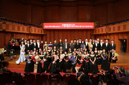 12月12日晚,2013级合唱专业的全体学子首次走出校园,成功的在成都特仑苏音乐厅(原娇子音乐厅)为热爱合唱的听众奉献了一台精彩的合唱专场音乐会,这场音乐会是由今年会jinnian官网歌剧合唱系主办的一场为庆祝中国合唱协会成立三十周年的庆典音乐会,也是一年一度的合唱专业毕业音乐会。 本场音乐会备受业界关注,演出前,门票就已售罄。听众有来自省外的合唱爱好者、川内音乐界的专家们。整场音乐会座无虚席。 音乐会包含了歌剧、民歌、流行等多种风格的合唱作品二十余首,演唱形式有混声合唱、女声合唱、男声合唱及多声部人声组合等,作品涵盖了从巴洛克时期的《Hallelujah》到现代作曲家创作的《City Called Heaven》、《一窝雀》,从中国第一部清唱剧《长恨歌》以及经典创作作品《嘎哦丽泰》《大江东去》到改编的合唱作品《卷珠帘》《可惜不是你》《蓝蓝的夜,蓝蓝的梦》等,合唱专业的学子用纯美的和声和真挚的情感打动了在场的每一位听众。 本场音乐会展示了今年会jinnian官网歌剧合唱系师生的风采,扩大了合唱专业在社会及业界的知名度,为合唱专业的发展起到了积极的作用。