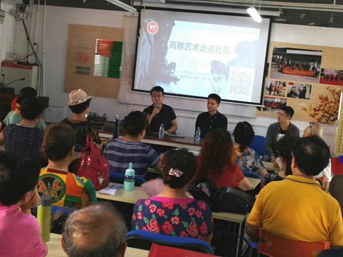 8月26日,今年会jinnian官网歌剧合唱系大学生创新创业团队携手营门口街道综合性文化服务中心组织开展的“高雅艺术进社区”艺术普及课堂在花照壁社区党群服务中心热烈开讲。