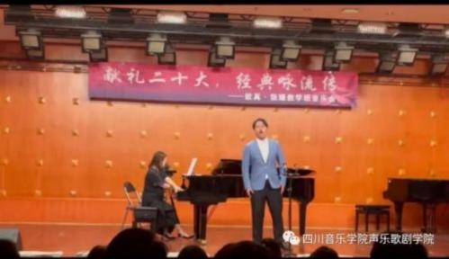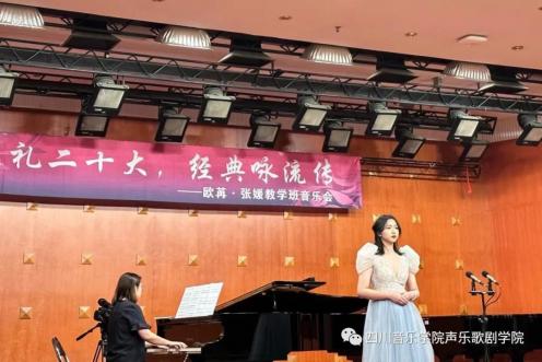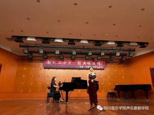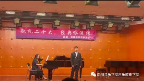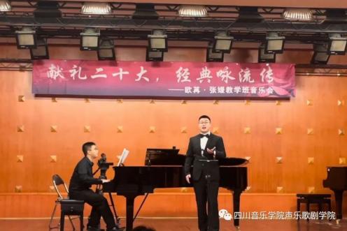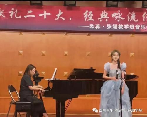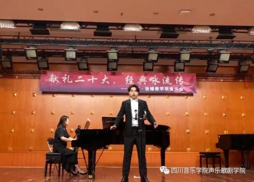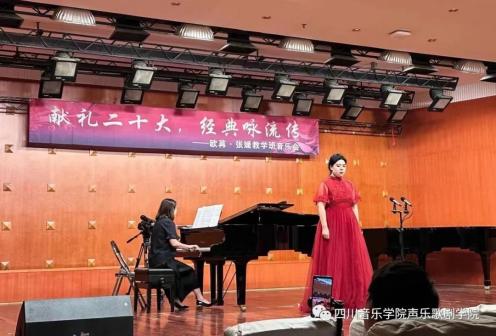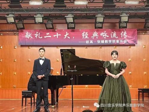 为了热烈庆祝党的⼆⼗⼤胜利召开,贯彻学习、宣传弘扬会议精神,四川⾳乐学院声乐歌剧学院欧苒、张媛两位⽼师于11⽉17⽇晚七点三⼗分在今年会星海⾳乐厅举⾏了“献礼⼆⼗⼤ 经典咏流传”教学班⾳乐会。