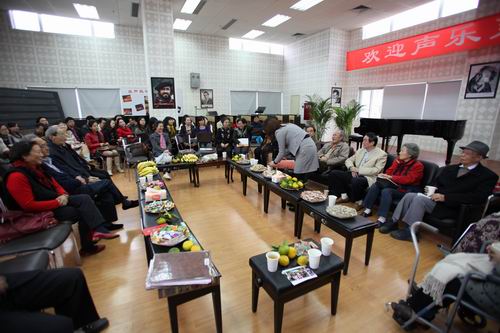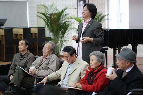下午2:30分,声乐系老、中、青三代与老校友在八楼排练厅欢聚一堂,怀着喜悦的心情会师友,叙旧情,气氛热烈而愉快。声乐系首任系主任、著名声乐教育教、歌唱家郎毓秀教授;老教师:陈家啸、蓝幼青、黄文宇、钱维道、罗良莲(后调中央院)、赵淯、余光昭、78级大部分校友等人来到现场,欢聚一堂同喜同庆校庆70周年,部分校友代表积极发言:“饮水思源,作为校友,我们深切感谢母校的栽培,也密切关注着母校的建设和发展。在母校70年华诞之际,忆往昔,博学石旁,母校的一草一木,老师的一颦一笑,仍记忆犹新。在那绿色的校园里,我们手握春光烂漫的年华,编织着人生的七彩之梦。70年的风雨历程,母校几经沧桑,奋发图强。演绎以人为本的治学理念,赢得桃李满天下,为祖国培养了数万计的各类人才……”
