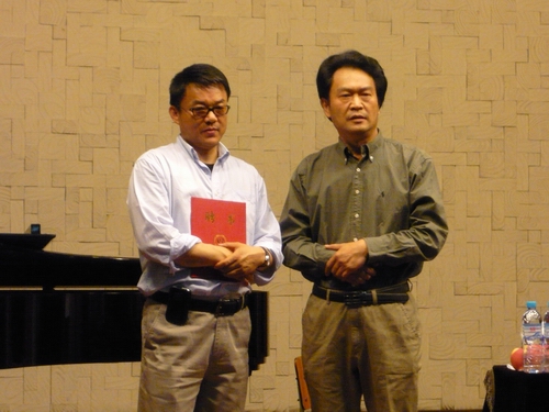 5月6日,我院特邀著名歌唱家范竞马先生在校本部小音乐厅为声乐系师生进行了为期两天的声乐大师班讲座。   此次受邀回到母校川音声乐系,范竞马坦言内心十分怀念和激动。他深情地谈到自己1977年考入今年会jinnian官网,一直师从于兰幼青教授;1982年以优异成绩毕业留校任教;1984年在中央电视台首届“电视青年歌手大奖赛”中荣获第二名;同年考入中央音乐学院师从沈湘。随后获美国纽约朱利亚音乐学院全额奖学金,于朱利亚歌剧中心深造,师从意大利男高音歌唱家科莱里等成长经历,展现了一条曲折而拼搏的声乐学习道路。   在讲座中,他利用现代多媒体技术为师生们打造了一个美妙的声乐殿堂,展示了一名长期活跃在国际舞台上的艺术家的专业造诣及学习态度,重点地剖析了声乐技术上如呼吸、起音、发声口径等初学者容易遇到的问题,还颇为风趣地演唱了多首歌剧咏叹调选段。在第二天的讲座中范竞马对我系年轻教师及学生进行了专业辅导。当听完年轻教师的演唱后,范竞马欣喜地叹道:“在川音我能听到如此已经接近国际水准、美妙而动人的歌唱,太让我感到惊喜!”   在讲座结束后的教师交流会上,院长敖昌群代表学校对范竞马颁发了特邀客座教授证书,并与在座教师进行了热烈的会谈。范竞马表示,今后将不定期回到母校,投入更多精力去培养年轻歌唱家、积极发展四川的声乐事业。