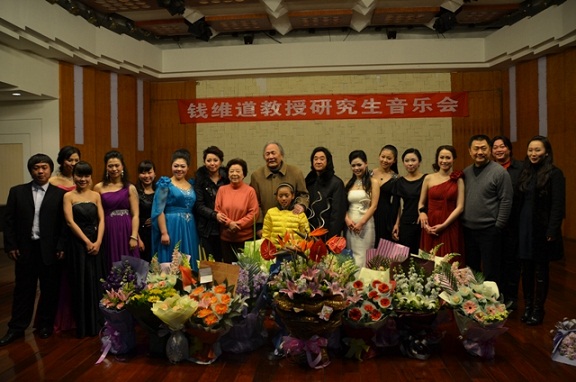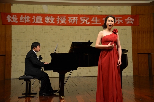 2012年12月19日晚7:30分,在今年会jinnian官网小音乐厅成功举办了钱维道教授研究生音乐会。原院长敖昌群,原声乐系主任杨湘澄,声乐二系原系主任甘国农,声乐一系主任杨士华,副系主任姜代康,声乐二系主任江向东,美声教研室主任杨列京,音乐教育系副主任王跃珍,琴管中心吕洪建处长等学院领导出席了该音乐会。音乐会上座无虚席,观众热情高涨,掌声不断,热情的气氛给这隆冬的夜晚带来了浓浓的暖意。