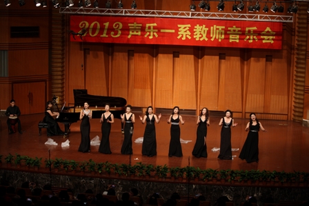 12月16日晚7:30分声乐一系教师音乐会在我院大音乐厅隆重举行。出席演出现场的领导有易柯院长、孙洪斌副院长以及来自兄弟院系的领导。 晚会分集体节目和独唱节目,其中集体节目有:男生合唱、女生表演唱、民歌联唱以及二重唱;晚会节目形式多样,多彩纷呈。男声合唱《我像雪花天上来》拉开本场晚会的序幕,赢得观众一阵呐喊。女生二重唱《为你歌唱》,选自电影《修女也疯狂》的-女生表演唱《I Will follow you》及民歌联唱把晚会推向了高潮;我系青年教师张茂林副教授刚刚从国际声乐比赛中载誉归来,他的演唱技术水平得到了观众雷鸣般的掌声。 这台音乐会是声乐一系常规例行汇报演出,音乐会的成功举办,彰显了声乐一系强大的师资力量。在系主任杨士华、系党支部书记文雯的共同参与演出及副系主任邓芳丽的支持下,音乐会秉承声乐系的优良传统,老中青三代教师集聚一堂,不仅是我系教师风采和成果的集体展示,也是面对全院师生的一次大检阅。音乐会的成功举办,必将激励全系教师再接再厉,不断提升专业素养,切实做好教书育人工作。