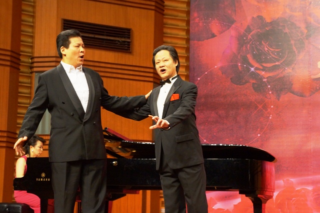 4月21日晚7:30在学院大音乐厅成功举办了一次跨系协作的音乐会。这次音乐会由学院艺术处主办,声乐一系、二系、歌剧合唱系共同承办;学院各个系的男中音低声部八名教师共同协作完成。 我系系主任杨士华教授、青年教师张茂林教授和周容生讲师参加了音乐会的演出。像这样跨系协作的同一演唱声部的音乐会在我院尚属首次。在这次音乐会上,系主任杨士华教授演唱了歌曲《虹彩妹妹》和《教我如何不想她》;张茂林教授演唱了歌剧古诺浮士德选曲《你是假装进入梦乡》,莫扎特歌剧后宫诱逃选曲《我取得了胜利》,周容生老师演唱了《你将去远征》和《我一无所有》,我系教师的表演深受观众好评。