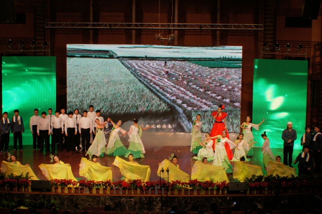 这台大型晚会是声乐一系全体师生倾情奉献的巨作,也是声乐一系学生综合舞台表现能力的一次大检阅。参加演出的近300名师生中,有系主任杨士华老师、副主任唐竹雅老师等部分骨干教师。晚会采用配音讲述、视频画面、现场互动等多种手段,表达了热烈庆祝党的十八大胜利召开的喜悦心情。晚会得到省领导、院领导的高度赞扬。