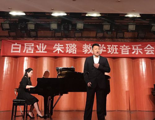 2017年 4月13日,我院聂耳音乐厅举行了 “白居业、朱璐教学班音乐会”,钢琴伴奏由金玮老师和杨媛媛老师担任。 音乐会演唱的同学由四个年级本科生担任,音乐会上,迥异风格的精彩演唱;老师们多样化特点的选曲;通过同学们对这些作品的诠释向观众展示了较为全面的技术能力;优美的音色给观众留下深刻的印象。 音乐会的成功举办,丰富了同学们舞台经验,提高了演唱技巧和专业水平。