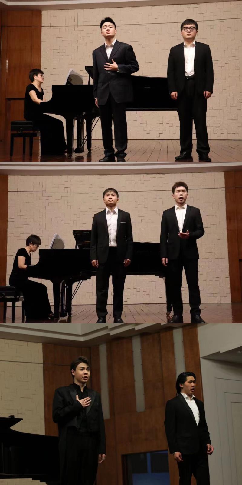 “在路上——音乐会”上全体同学声情并茂的演唱了自己单人曲目,无论是中文、韩文,意大利文,咏叹调等,都完美展现出了自己对歌曲理解。获得了观众以及老师们的一致好评。 音乐会上,每人演唱2到3首不同风格的曲目。每位同学都有自己独唱以及二重唱,不仅仅在于展示学生们对不同音乐风格学习的掌握,还体现了同学之间的配合。