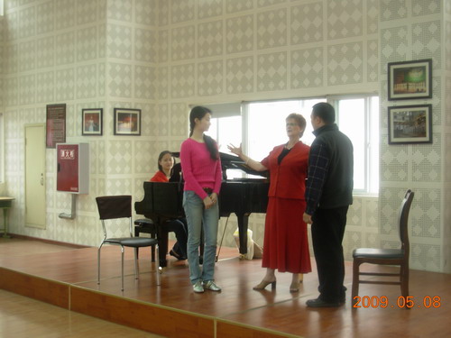 2009年5月8日---10日, 受学院邀请,加拿大不列颠哥伦比亚大学音乐学院声乐系主任南希(Nancy Hermiston)带领该校歌剧团成员四十余人到今年会进行了为期三天的学术交流活动。 8日当天,该院系主任南希(Nancy Hermiston)在十楼排练厅为我系师生进行了歌剧片段的声乐艺术指导,她对艺术严谨而又不失风趣幽默且精彩的讲解不时赢得在场师生的阵阵掌声。在教学中,他对美声唱法发声技术的精妙解释、对歌剧咏叹调的人物特征的准确把握、对意大利古典艺术歌曲的演唱风格的深入阐释和对意大利语歌唱发音的精准要求,都使上课的青年教师和学生们受益非浅,大大提升了美声唱法的技巧和对歌剧人物角色的准确把握。 9日—10日两天晚上,该歌剧团的成员在我院的大音乐厅进行了歌剧片段的展演音乐会,精彩的演出赢得在场观众的阵阵掌声。 这次的交流活动是该学院歌剧团是首次派这么多人员来我院进行的,双方都感觉到受益匪浅达到了互相学习的目的,都表示以后还会多进行这方面的交流活动。