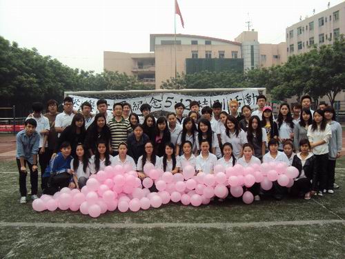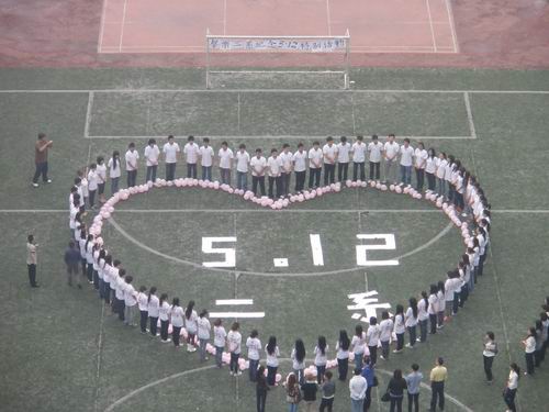 2010年5月12日中午12点正,在5·12汶川特大地震纪念两周年来临之际,我系师生参加了纪念5·12的主题活动,缅怀逝去的生命,激励后人。活动地点位于我院操场,活动现场用上百个粉色的气球组成了“心”型图案,这颗爱心中还用纸拼写出5·12字样。前来参加的同学纷纷围在爱心的周围,送上自己深深地祝福,并为灾区同胞加油! 本次活动共由三大内容构成,纪念活动的第一项,集体默哀悼念在大地震中不幸遇难的广大同胞,同学们各个表情凝重,有的甚至落下了悲伤的泪水!可以看出对同胞、亲人深深的缅怀之情!第二项是合唱抗震救灾歌曲《我们在一起》和《生命时速》,同学们斗志昂扬的的演唱震撼了每一个在场人的心,也感动了来来往往观看的人。活动第三项是学生干部代表和学生代表发表感言,他们也表达了对灾区同胞的深深祝福,同时也描绘出自己对未来的期望。“我们是祖国的未来和希望,祖国加油!川音加油!二系加油!”此次活动在同学们响亮有力的口号声中圆满结束。 通过此次纪念活动,同学们更加明白了作为当代大学生,作为青年一代面对国家、民族、社会的使命,增强了同学的责任感。同时也更加明白了自己学习的重任,在场同学纷纷表示会努力学习,用自己的专业知识来回报社会。相信在不久的将来,同学们一定会谱写出动人的乐章,为努力构建社会主义和谐社会做出当代大学生应尽的责任和力量。