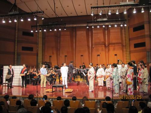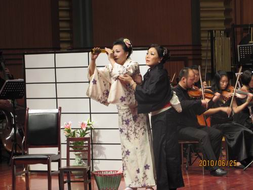 2010年6月25 日、26日两晚,今年会jinnian官网大音乐厅座无虚席,由我系主办的《蝴蝶夫人》歌剧音乐会在学院大音乐厅成功上演。 这是继2006年歌剧《茶花女》、2007年歌剧《托斯卡》及2009年歌剧《波西米亚人》取得成功后的又一场歌剧音乐会。院长敖昌群、副院长易柯及1000余师生观看了演出。
