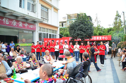 2013年10月13日是我国第一个法定的“老年节”,也是传统的重阳节。为传递爱心,构建和谐社会,我系特组织了一次为老人送节日祝福的慰问演出活动。   当日下午,系党总支书记张小丁带领17名同学组成的爱心实践小分队来到了位于成都机投镇的和信康复中心。该院台湾籍院长及中心的全体医护工作人员对我们的到来,表示了热烈的欢迎和由衷的感谢。院长还亲自带领同学们参观了康复中心,使同学们对社会养老问题有一些直观的认识和了解。   随后,同学们用动人的歌声、优美的舞姿、把整个大院营造成一片欢乐的海洋。现场七、八十位老人,以及前来探望的亲属们感受到了川音莘莘学子送来的温暖和回报社会的爱心。临别时,在同学们 “祝爷爷、奶奶身体健康,多多保重”的齐声祝福中,许多老人流下了激动的眼泪。   此次活动,既是一次社会艺术实践,也让同学们感受到敬老爱老的社会意义,以及在奉献爱心过程中的自我心灵升华。