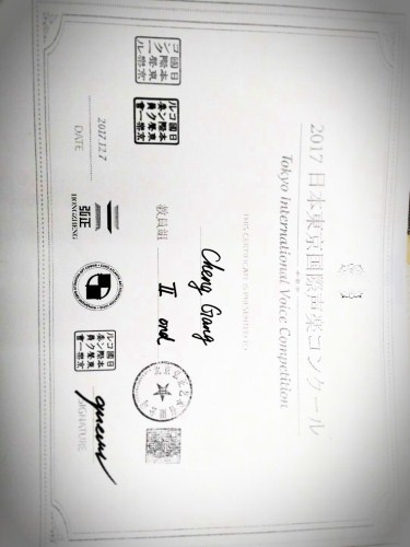 2017年12月7日,在日本东京举行的国际声乐比赛中,我系青年教师程刚荣获教师组中国作品演唱第二名。 此次比赛以世界和平和相互理解为宗旨,在传递艺术,文化信息的同时,以在世界范围内发掘更多的年轻音乐家,帮助众多的青年音乐家和音乐爱好者实现他们的梦想为目的。程刚老师以漂亮的音色与娴熟的演唱技巧,以及与声乐艺术指导老师近乎完美的配合,得到了评委的高度评价,最终获得了第二名。 在此,特向程刚老师及其声乐导师江向东教授、声乐艺术指导教师王曦表示热烈的祝贺! 特此公告,以资祝贺! 今年会jinnian官网民族声乐系 2017年12月13日