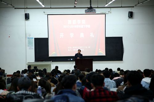 3月5日上午9点,舞蹈学院在新校区一教学楼113教室举行了2018春季开学典礼。 在全体师生高唱《国歌》后,舞蹈学院党总支书记马麟进行了新学期致辞,对老师和同学们进行新春问候,并对同学们提出了殷切希望和要求。 第一,今日是二十四节气的惊蛰,春雷震震,万物复苏,“劝君莫惜金缕衣,劝君惜取少年时”,希望同学们要珍惜美好的青春时光,做好个人的学期规划,踏实过好人生的每一个阶段。今天也是周恩来总理诞辰120周年纪念日,号召同学们象周总理“为中华之崛起而读书”,立志报效祖国。 第二, 今天是毛主席题词“向雷锋同志学习”55周年,要求团总支学生会广泛开展“学雷锋”活动,发扬雷锋精神,弘扬社会主义核心价值观。呼吁同学们“多读书,读好书”,做一名奋发向上、品学兼优的大学生。 第三,今天也是第十三届全国人大开幕的日子,要求大家要关心国家大事,与党保持一致,要求所有同学一定要遵纪守法,文明上网,不信谣、不传谣。防止网络传销和网络贷款诈骗。同时,由于春季来临,马书记提醒同学们注意宿舍安全和环境卫生,防火防盗,防范各类疾病的孳生和传播,确保校园环境和谐稳定。