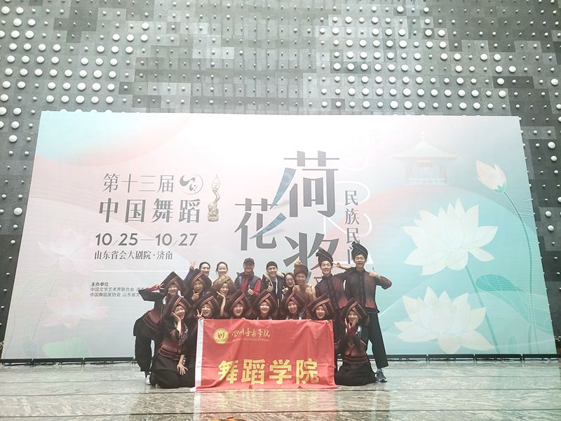 10月25—27日,由中国文学艺术界联合会、济南市人民政府、中国舞蹈家协会、山东省文学艺术界联合会主办,中共济南市委宣传部、中国文联舞蹈艺术中心、山东省舞蹈家协会承办,济南市文学艺术界联合会、济南市舞蹈家协会协办的第十三届中国舞蹈“荷花奖”民族民间舞终评比赛在山东济南举行。由舞蹈学院杨畅老师编创,麦陈玲、李妮亭老师排练的群舞《年轮》在四十三个入围终评作品中最终获得第十一名的成绩。
