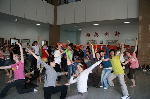 5月14日下午3点30分,优美、欢快的音乐在川音新校区第四教学楼响起,优美的舞姿、热烈的情绪,人声、欢笑声、欢呼声在第四教学楼不绝响起。 联欢活动中,中美学生各自表演了中国的民族民间舞蹈,美国杨伯翰大学学生表演了爵士舞、街舞等节目,美国杨伯翰大学的老师和川音舞蹈系的老师还各自向学生教授、练习了即兴舞、美国民间舞和羌族舞蹈。联欢活动中,中美两国师生交流、交谈,欢声笑语不时荡漾在教室里。在这特殊的时刻里,中美学生联谊活动的意义已超出艺术的范畴,它更彰显出艺术直达人心灵的本质。