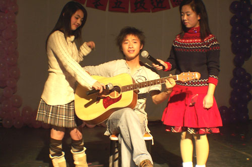 我系在四教学楼举行了迎接05级新生联欢晚会