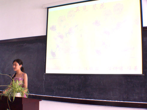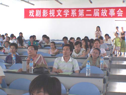 2006年6月1日,我系又成功地举办了第二届故事会比赛决赛。由系内资深专业课老师担任评委。由同学们自己编写的精彩故事是从小组、班里层层推选出来进入系上组织的决赛的。通过前期的编创,选稿,两次试讲,共选出了12篇优秀故事参加本次比赛决赛。故事类型多样化,有写身边的故事,亲人朋友的故事,有展开奇思妙想,写荒诞类的故事,有写诙谐幽默类的故事。通过这些类型多样化的故事,让整个比赛显得丰富多彩。评委组长赵尔寰老师高度评价了同学们的创作热情,他指出,本次故事会有很多新的元素,学生的想象力很丰富,增加了此次故事会的精彩度。学院教务处石小涛处长是第二次光临我系故事会,对故事会给予了高度评价,“故事会丰富了文笔,锻炼了语言能力,是一次成功的探索。”
