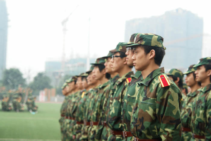 开训后,才开始真实体会军训的苦。每天到达训练场第一项就是站军姿,“挺胸抬头收腹!双手自然下垂紧贴裤线!双眼直视前方四十五度处!”绝对不可以乱动,这让我们深切体会了军队的纪律严明。还有不停的队列练习,每一个动作都严格要求,即使只是一个简单的摆臂动作也要单独练习上百次。齐步走、正步走、胯立、蹲姿、四面转法……这些看似简单的动作,都是每天必练的科目,手臂麻了、腿脚酸了、手指关节在练习摆臂时被身边的同学打痛了……每天最期待的就是训练间隙宝贵的十分钟休息,所有人都迫不及待的盘坐在草地上,或抓紧时间去卫生间,或相互倚靠着聊天,或闭上眼睛休息,或趁机赶紧揉揉酸痛的关节。突然发现平时不以为然的十分钟居然可以做这么多事,绝对不是微不足道的一小会时间。短暂的休息过后,又继续投入紧张严肃的训练中。遗憾天公不作美,军训的几天刚好是倒春寒其间,原来期待的阳春三月没有露面,却下了好几天的细雨,阴冷的寒气总是贴在身上,久久散不去,冷也只能忍着。于是每到了休息时间一低头,双手已经是“红得发紫”了。晚上还要训练,夜晚是最寒冷的时候,甚至几次都是冒雨训练的,每日回到寝室全身酸痛无比,倒在床上就能立刻睡去。曾无数次抱怨,军训太苦太累了,盼望着军训早点结束。