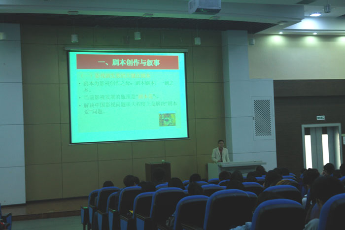 文学的“三角叙事”与剧本创作 2011年4月14日下午3时,戏剧影视文学系有幸邀请到了四川大学文学与新闻学院的唐小林教授,举办了一场以“文学的‘三角叙事’与剧本创作”为主题的讲座。 唐小林教授首先申明了剧本的关键性,而后强调叙事对于剧本创作的重要作用,就中外古今的文学经典为大家讲解文学叙事与“三角叙事”。唐教授的引述可谓“旁征博引”,涉及到了从国外的《圣经》到中国的近现代小说、当代电视剧、电影等与剧本创作和文学叙事有关领域,同学们既见识到了唐教授渊博的学识,也在丰富的范例和生动的讲解中深切的理解到文学三角叙事对剧本创作的重要作用。 此次讲座举办的非常成功,同学们不仅从中学习到了优秀剧本的创作理念,也感受到了唐教授身为教师的优良品质和人格。