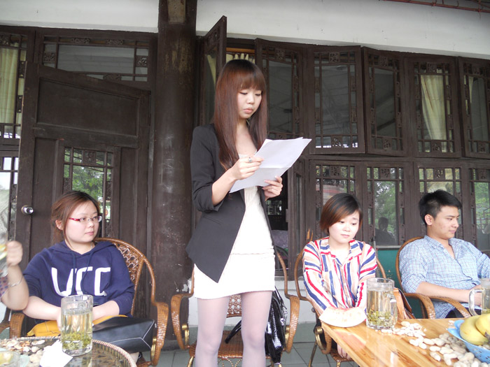 活动第二项是由09级的彭洁、侯瑞林同学和10级的索新航同学代表党员同志发言。三位同学都经过精心的准备,发表了精彩的讲话,对支部的建设和今后的工作提了很好的意见和建议,譬如对考研学习的准备,对低年级同学学习上的建议,对学生党支部真诚的祝愿和对老师的感谢等。