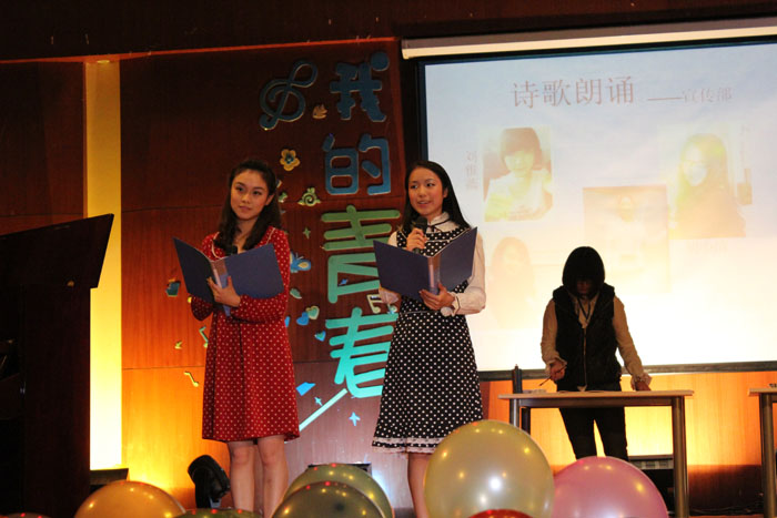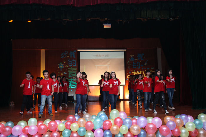 联欢会开场秀是由2012级一班全体同学带来的集体舞《Nobody》,整齐、有力的舞姿洋溢着青春的活力。喜迎十八大,余桂芝同学一首《唱支山歌给党听》深情表达了对党的热爱与崇敬。2012级二班集体小品《新白蛇传》和三班音乐短剧《明天会更好》彰显了同学们的创新与活力。由同学们自编自导自演的小品《甄嬛传》更是赢得老师和同学的称赞与掌声。歌曲《好兄弟》、《高原红》,舞蹈《Poker Face》、《Only One》、《Telephone》等更是赢得全场欢呼不断。由系学生会组织部带来的《戏文好声音》,宣传部的《配乐诗表演》等节目则体现了集体的力量。文体部的《概念T台秀》展现了床单不一样的风采与设计师的环保概念,全场掌声雷动,现场气氛达至高潮。最后,联欢会在学生会全体成员《相亲相爱》的欢快歌声中圆满落幕。