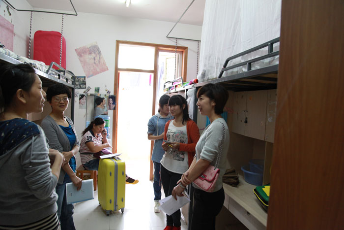 2013年9月6日上午10点,我系副系主任左芝兰副教授、系党总支温妮副书记在辅导员康涛的陪同下深入我系2013级新生寝室走访。走访中左主任和温书记亲切关怀新生,了解新生住宿方面的需求,及时解决新生住宿方面存在的问题。还与在寝室的新生家长亲切交流,希望家长能够多与系上辅导员和老师联系,加强沟通,形成合力,让学生能够顺利的完成四年学业。