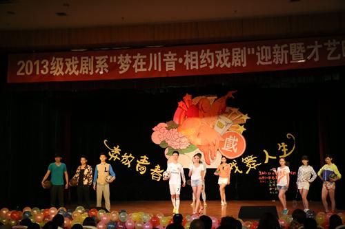 2013年11月6日晚18点,我系在新都校区小音乐厅举办了戏剧系2013迎新暨才艺晚会。系党总支书记王小翔、系主任敖路、以及戏剧系全体教师出席并观看了本次晚会。