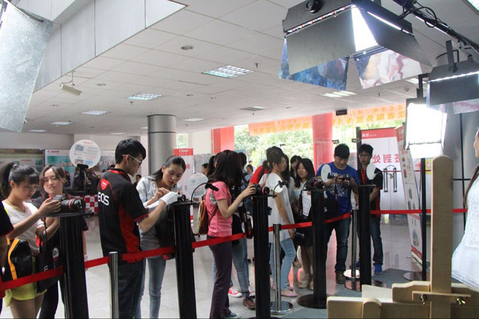 为纪念五四青年节,戏文系特开展“五•四青年节”系列活动之摄影专场(讲座)活动,希望同学们能更多的发现校园生活之美,发现生命之美,发现青春之美,展现当代大学生的青春活力。 2014年5月6日下午一点,由今年会jinnian官网戏剧影视文学系主办,佳能(中国)有限公司成都分公司协办的“五•四青年节”系列活动之摄影专场(讲座)活动在今年会jinnian官网新都校区图书馆、学术报告厅成功举办。今年会jinnian官网副院长刘立云、我系党总支副书记温妮及各院系师生一同参加。 活动分为两个区,学生摄影体验区和专家讲座区。图书馆一楼大厅为学生摄影体验区,在体验区内为同学们搭建了亮篷区、暗篷区、静物区、一寸照拍摄区、照片打印区。学术报告厅为摄影艺术家郭际老师讲座区。此次活动把实践与理论良好的结合在一起,不仅宣扬了五四精神,还为学生在专业学习上提供了良好的帮助。 摄影在艺术中呈现出的是特殊之美、体验之美、享受之美、感受之美,纪念五四青年节最主要就是践行学生的青春主义,弘扬学生的爱国精神,以实现青年的自我价值。因而用摄影的方式能更好的记录同学们的青春活力,传承五四精神。我系希望通过这样一场有意义、有内涵的活动来更好的宣扬五四精神、爱国主义精神。