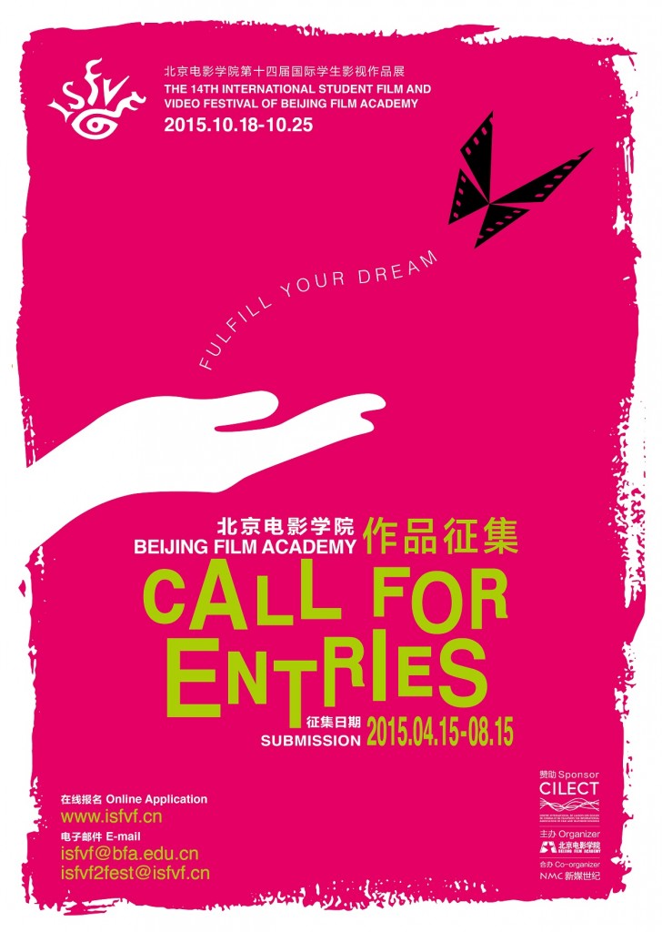 北京电影学院国际学生影视作品展(ISFVF)是由北京电影学院主办的一项国际学生影视作品交流活动。本项活动每年举办一届,是北京电影学院正式列入教学计划的教学内容,与此同时,提供给更广大电影学习者展示才华、交流思想的机会和舞台。本届影展将于2015年10月18日至10月25日在北京电影学院举行为期一周的展映和交流活动。影展组委会现面向国内外影视专业学生作者征集作品。