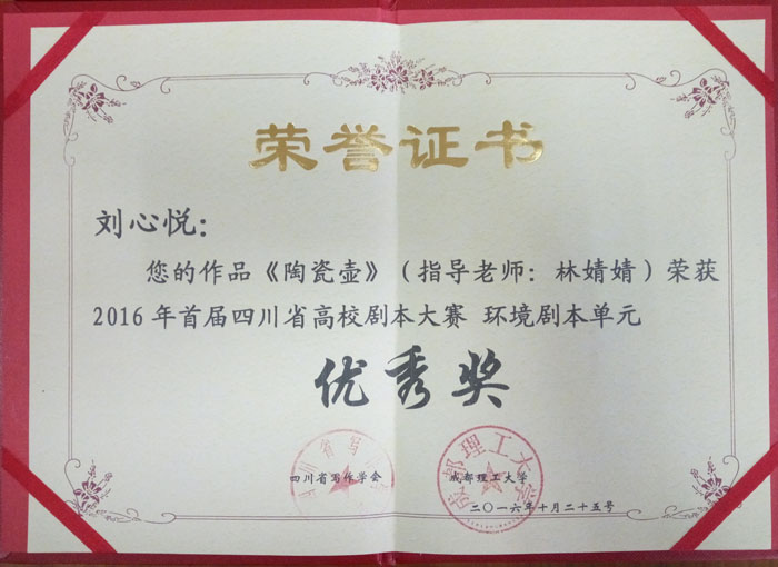 我系在“四川省首届高校剧本大赛”中获奖