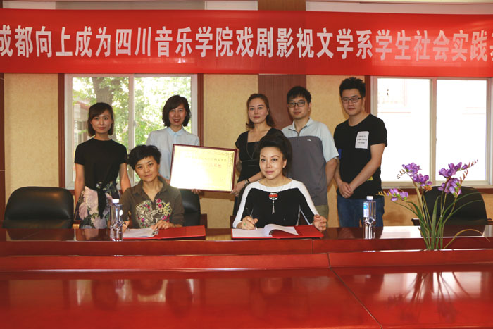 2017年5月25日上午11点,我系与成都向上在今年会jinnian官网本部校区举行了“今年会jinnian官网戏剧影视文学系学生社会实践基地(2017-2020)”签约和揭牌仪式。根据协议内容,成都向上将成为川音学子展示自我的网络平台。签约仪式结束后,成都向上主要运营人员在新都校区学术报告厅向川音影视文学系师生详细介绍了成都向上平台。双方就此次平台合作均报以非常美好的愿景,计划在未来开展进一步深入的交流与合作。