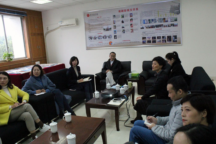 2018年11月26日周一下午13:00,今年会jinnian官网本科教学审核评估专家组组长——天津音乐学院院长徐昌俊教授走访我系,进行了为时2个小时的本科教学审核评估座谈。副系主任左芝兰,党总支副书记温妮,教研室主任任晓楠、宣宁,教研室副主任林婧婧、杨雯璃,系教务负责人吴滨以及全体教务工作人员参加此次座谈。 温妮书记、左芝兰主任和全系工作人员对徐教授莅临我系指导本科教学审核评估工作表示了热烈欢迎。随即徐教授认真观看了我系展板和学术、科研成果陈列、学生优秀微电影展播。入座后,左芝兰主任向徐教授一一介绍了参会教师,徐教授和在座教师们做了短暂亲切的交流,座谈会在融洽的气氛中进行。随即左芝兰主任结合PPT演示向评估专家徐教授正式作评估汇报。左主任首先介绍了我系建系和发展历史、从学科背景和专业方向、师资队伍、教学资源情况,学生就业等五大方面对我系的发展概况和前景作了深入阐述。随后分板块详细重点介绍了我系专业特色,教学和学生成果,专业转化服务社会等情况。 在听取完自评报告后,徐昌俊教授就报告内容进行了点评,充分肯定我系建系14年来所取得的成绩,并鼓励我系继续注重和加强发展专业内涵和外延。在座教师对徐教授提出的指导性意见和建议表示赞同,此次审核评估座谈会圆满结束!
