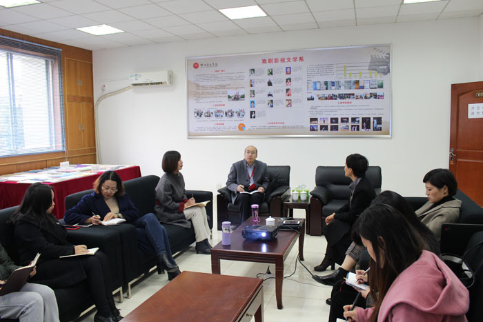 2018年11月29日周三下午15:00,今年会jinnian官网本科教学审核评估专家组组成员——西南科技大学高教研究与评估中心主任谢鸿全教授走访我系,听取我系本科教学审核评估自评报告,开展教师座谈。副系主任左芝、党总支副书记温妮、教研室主任、我系教师代表,部分教职工参会。 温妮书记、左芝兰主任和全系工作人员对谢鸿全主任莅临我系指导本科教学审核评估工作表示热烈欢迎。谢鸿全教授和在座教师进行简短交流后,左芝兰主任正式汇报我系教学工作。 左芝兰主任从我系发展的历史沿革、办学目标、办学特色、教学改革、人才培养情况、学生管理等方面,对我系本科教学、管理情况进行了详细汇报。 谢鸿全教授着重听取了我系专业建设、教学改革和人才培养的相关情况,和我系教师就这三方面进行了深度探讨并提出了专业资源共享等宝贵的建设性意见。 座谈会后,谢教授参观了我系师生成果展,对我系取得的教学成果和在创作人才培养方面取得的成绩以及良好的教学管理水平给予了充分肯定。