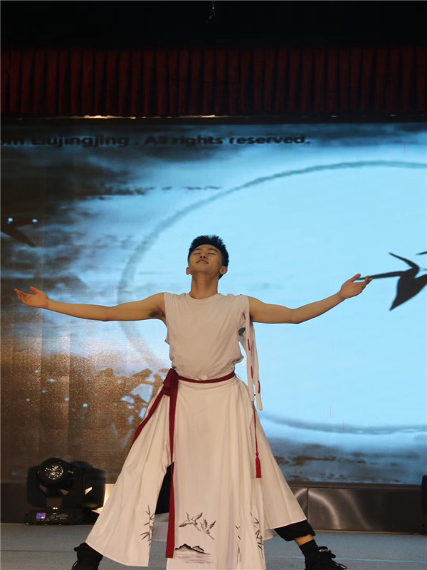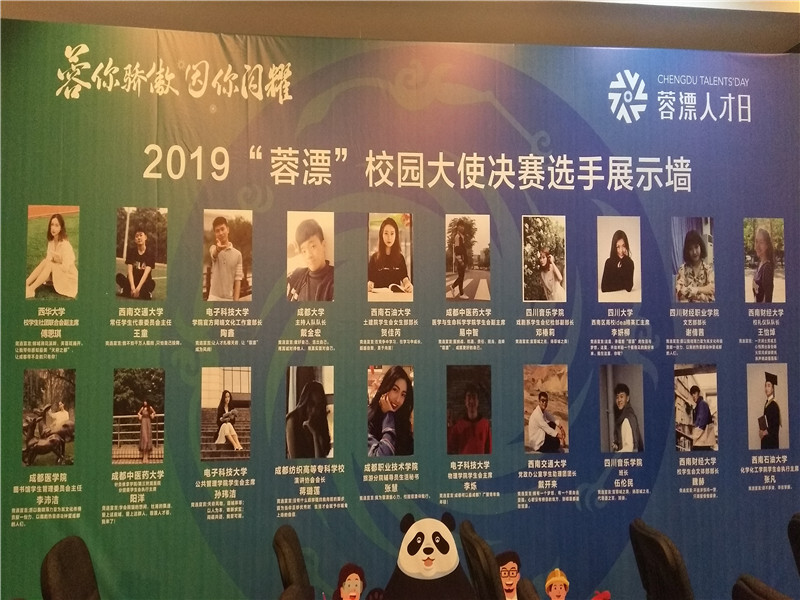 2019年4月19日下午,由四川省成都市人才工作领导小组办公室主办,共青团成都市委员会承办的2019“蓉漂”校园大使选拔决赛暨成都人才HR联盟成立仪式在电子科技大学隆重举行。来自全省13所高校的20名选手齐聚一堂,共享这充满发展与梦想的艺术盛宴。经过激烈的角逐, 今年会jinnian官网戏剧系2016级学生伍伦民最终凭借原创诗歌舞《茶韵成都》技压群雄,获得由全场20名来自成都市各区县HR共同投票选出的“人气之星”称号,并当选为2019“蓉漂”校园大使。而同样来自我院戏剧系2016级的同学邓椿莉则获得了2019“蓉漂”校园大使的入围奖。